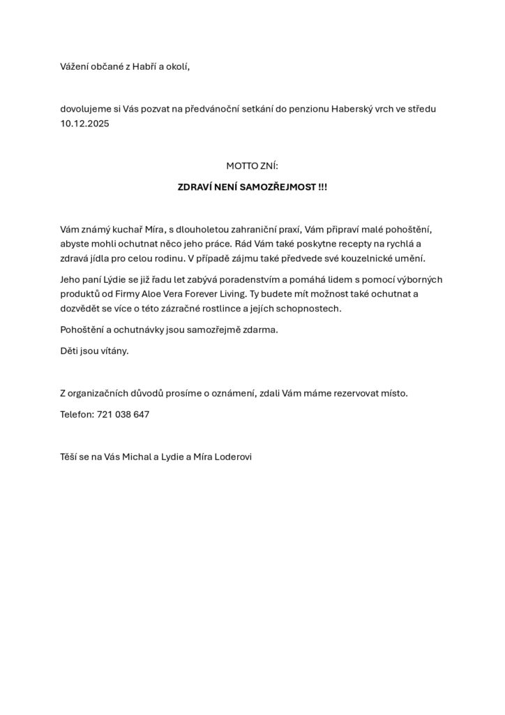 • Pozvánka na předvánoční posezení v penzionu Haberský vrch